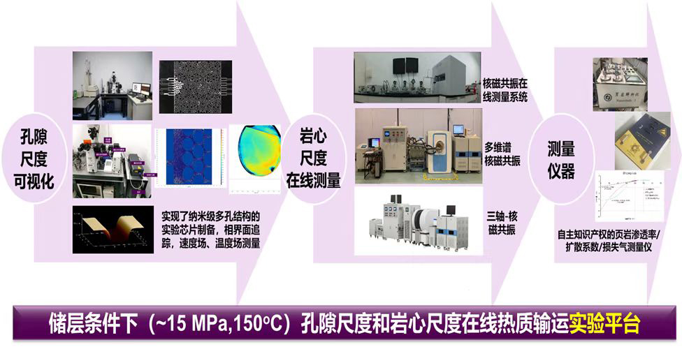 結合數字化與機器學習技術,實現油氣資源與二氧化碳封存利用高效精準預測;創新了地層原位條件界面、組分、結構和輸運特征的實驗方法;研發超低滲巖心滲透率測量儀,頁巖氣損失氣解析儀和頁巖儲層孔隙度測試技術并成功應用于國內外多個工程項目。